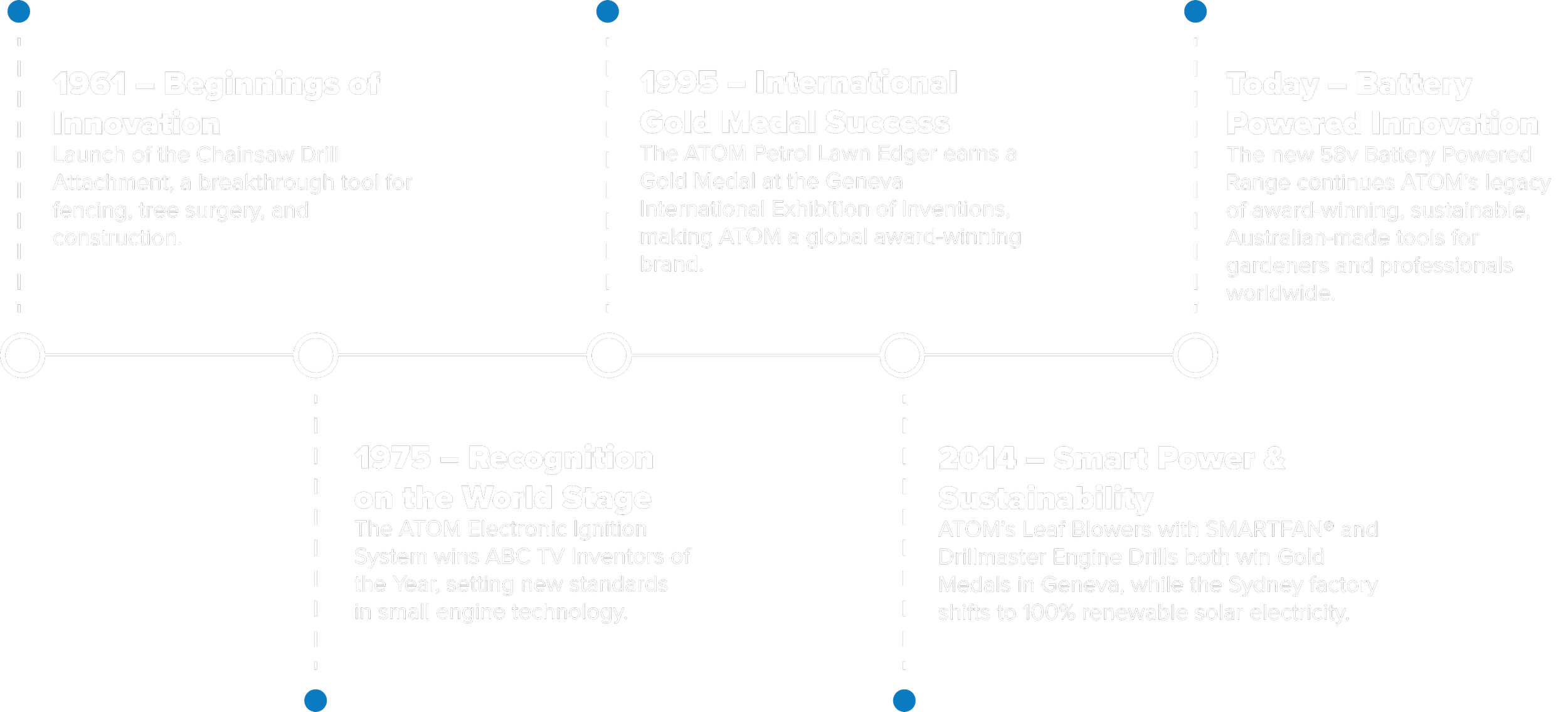For over 60 years, Atom has earned global recognition for innovation in outdoor power equipment - winning multiple Gold Medals at the prestigious Geneva Inventions & Technology Exhibition and numerous Australian innovation awards. These awards highlight Atom’s legacy of pioneering design, high performance, and engineering built to last.